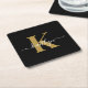 Porta-copo De Papel Quadrado Monograma de Script Dourado Preto Elegante
