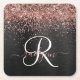 Personalize facilmente esta elegante design de porta copos de de papel quadrado, moda e elegante, com brilho bonito de ouro rosa num fundo metálico escovado preto.