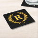 Porta-copo De Papel Quadrado Monograma Dourado Laurel Wreath