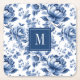Porta-copo De Papel Quadrado Monograma Floral Azul Elegante