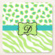 Porta-copo De Papel Quadrado Monograma inicial da pele do leopardo branco-verde
