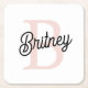 Porta-copo De Papel Quadrado Monograma Personalizado Moderno e Nome Pastel Rosa
