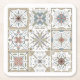Portas copos com uma série de nove (9) azulejos diferentes ao estilo espanhol, em forma de mosaico de cor neutra.
