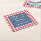 Porta-copo De Papel Quadrado Name Quote. Red & White Check, Blue Denim Print