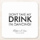 Porta-copo De Papel Quadrado Não tome minha bebida. Estou dançando texto preto