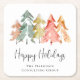 Porta copos elegante para a festa de Natal do seu escritório e a bolsa de promocionais da sua empresa apresentando uma moderna aquarela de pinheiros em verde-sábio, vermelho, ouro e terracota, "Felizes Feriados" em um roteiro de na moda e seu nome comercial em uma simples tipografia.