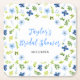 This beautiful and elegant coaster features watercolor baby blue and navy blue flowers with foliage. The text combines handwritten script and serif fonts for a stylish and modern look. This is perfect for a spring or summer rustic bridal shower.