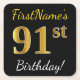 Esta simples design de porta copos de papel apresenta uma mensagem como "FirstName’s 91rua Birthday!", com a "91rua" a ter uma aparência falsa/de cor dourada, sobre um fundo de cor preta. O nome pode ser personalizado. Portas copos de papel personalizadas como estas poderiam talvez ser usadas em uma festa de aniversário para alguém que comemora seu 90º aniversário. [~Z0000194]