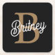Porta-copo De Papel Quadrado Nome do Monograma Elegante Moderno Script Dourado