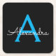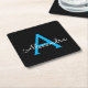 Porta-copo De Papel Quadrado Nome do Monograma Girly de Script Preto Azul