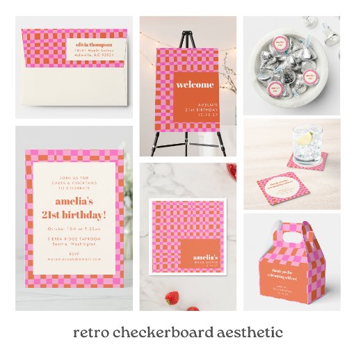 Abstract Checkered Pink Orange 21st Birthday PartyCriado por Opal Ellery