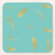 Elegante apresenta penas flutuantes ouros sobre fundo aqua
