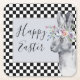 A porta copos do tempo de Páscoa bonito apresenta o retrato do coelho da cor d'água com o texto da coroa e do Felz pascoa em fundo preto e branco da prancha de xadrez.