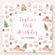 This elegant and festive coaster features a watercolor gingerbread house, gingerbread train, cake stand, cookie jar, hot cocoa, pink poinsettia flowers and Christmas trees. The text combines handwritten script and sans serif fonts for a stylish and modern look. This is perfect for Christmas birthday parties.