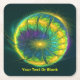 Uma imagem fractal esférica, verde, azul e amarela, segmentada (ou articulada), num fundo verde escuro. Personalize adicionando seu próprio texto.