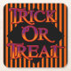 Letras cor de laranja vibrantes tradicionais saudando "Trick or Tratat" no Halloween.
