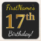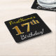 Porta-copo De Papel Quadrado Preto, Faux Dourado 17.º aniversário + nome person