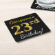 Porta-copo De Papel Quadrado Preto, Faux Dourado 23º Aniversário + Nome Persona
