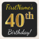 Porta-copo De Papel Quadrado Preto, Faux Dourado aniversário de 40 anos + Nome