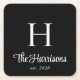 Porta-copo De Papel Quadrado Preto Monograma de Script Moderno