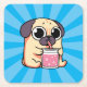 Pug muito bonito com uma bebida