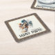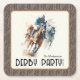 As portas copos de papel quadrado da borda marrom do partido Elegante apresentam cavalos de corrida e jockeys no caminho para a linha de chegada. CORRESPONDENTE a itens na nossa coleção.