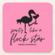 Reúna-se com seus amigos e familiares para celebrar seu aniversário! Diversos e festivos porta-copos de papel apresentam tipografia preta com um flamingo segurando um coquetel e a legenda "party like a flock star" (divirta-se como uma estrela do rebanho) em um fundo rosa-choque. Perfeito para festas de aniversário de adultos com tema tropical e de praia.