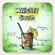 Parte de uma série divertida de designs-guia de barman com receitas de bebida. Este é para um Whiskey Sour feito com mistura azeda, uísque, cubos de gelo, segmento de limão e cereja vermelha.