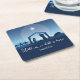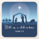 This beautiful blue drawing of the nativity scene is a gorgeous religious Christmas paper coaster for a church holiday party. Unto us a child is born. Send holiday blessings with this bible verse.