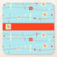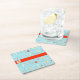 Conjunto de 6 portas copos descartáveis de conselho de pasta quadrada com uma imagem de um design ao estilo 50 com linhas onduladas vermelhas e brancas, quadrados vermelhos e verdes claros com as estrelas nelas presentes, retângulos verdes claros, estrelas brancas e uma banda vermelha larga em taruga. Veja portas copos de plástico e guardanapos correspondentes. Veja toda a coleção de Portas copos Nifty 50 na COMIDA/BEV| Seção Porta copos.