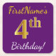 Porta-copo De Papel Quadrado Roxo, Faux Dourado 4º Aniversário + Nome Personali