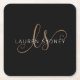 Porta-copo De Papel Quadrado Script Feminino Dourado Preto Moderno Monograma