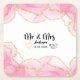 Adicione um toque elegante e prático ao seu dia de casamento com estes porta-copos de papel quadrados modernos rosa e dourado Mr. & Mrs. Com um fundo rosa suave, detalhes dourados elegantes e texto personalizável, estes porta-copos são perfeitos para recepções de casamento, chá de noiva, festas de noivado ou celebrações de aniversário. Personalize com nomes, data de casamento ou uma mensagem curta para um souvenir memorável e elegante que seus convidados vão adorar.
