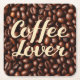 Uma proclamação real do amor pelo café. A frase "Lover Café" é gravada em negrito, escrita real, lembrando inscrições antigas. As letras se destacam em um pano de fundo de grãos de café robustos e escuros, criando uma composição visualmente atordoante e aromática. A imagem evoca um sentimento de luxo, indulgência, e o profundo apreço pelo simples prazer de uma xícara de café.