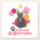 Esta é uma ilustração bonita e colorida de um gato preto com superpoderes de sua altura real cercado por balões e flores. Ele é legal e fantástico!