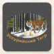 Um Tigre Siberiano emerge de uma floresta carregada de neve no Extremo Oriente Russo. O Tigre Siberiano também é conhecido como o Tigre Amur e o Tigre Ussuri. O texto russo (cirílico) abaixo da imagem diz "Ussuriiskii Tigr" (Ussuri Tiger). Adicione o seu próprio texto adicional no verso. A maior subespécie do tigre, o Amur, ou Siberiano, Tigre, está em perigo. Encontram-se na zona do rio Amur, na fronteira com a China e a Rússia. Alguns poderão ainda sobreviver na Coreia do Norte.