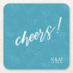 Design de porta copos de de papel colorida, com um padrão sem soldadura de folhas de palma em tons de lacre, com texto em negrito e branco "Cheers". Adicione suas iniciais e data de casamento usando o modelo fornecido. Este design tropical é perfeito para o verão, praia, casamentos tropicais, aniversários e outros eventos especiais. Procure ID577 para ver os produtos correspondentes.