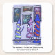 Uma porta copos de plástico com um desenho engraçado sobre fogos de artifício. Arte original de DBcartoons.
