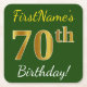 Porta-copo De Papel Quadrado Verde, aniversário Dourado do 70 do falso + Nome