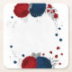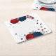 Porta-copo De Papel Quadrado vermelho escuro e flores azuis marinhos prateadas