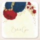Porta-copo De Papel Quadrado Vermelho escuro romântico e flores azuis marinhos,