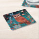 Porta-copo De Papel Quadrado Vom Künstler handillustrierte Eule – Boho Natur