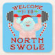 Você não encontrará Papai Noel sujar ao redor com os biscoitos anymore. Este ano, está levantando pesos em vez dos vidros do leite. Este design engraçado do feriado mostra um lustre, papai noel descamisado que levanta um barbell em suas mãos gloved. Cercou por bastões do visco e de doces, e o texto diz a "boa vinda ao Swole norte."
