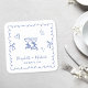 Porta-copo De Papel Quadrado Whimsical Blue Wavy Frame Wedding