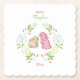 Soft pink and green baby shower coaster with rabbit and wreath. Personalize name and year.