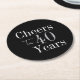 Porta-copo De Papel Redondo 40th Birthday Cheers 40 Years Black Silver Party