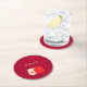 Esta porta copos personalizável mostra no fundo, duas formas orgânicas circulares unidas em vermelho e creme simbolizando amor, casal e casamento. São inscritas as seguintes palavras: casais e data e local do casamento. O fundo é burgundy.