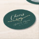Celebre com estilo com este elegante suporte para copos de bebida verde esmeralda, projetado com um coração de corda dourada e um script Cheers moderno e manuscrito. Perfeito para casamentos, festas de noivado ou jantares de ensaio. Adiciona um toque sofisticado às configurações do bar ou às mesas dos convidados e combina perfeitamente com a decoração da suíte esmeralda correspondente.