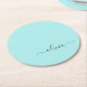 Porta-copo De Papel Redondo Aqua Blue Teal Modern Script Girly Monographic Nam
