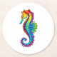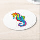 Articulação artificial, brilhante, arco-íris, cavalo de mar poligonal sobre fundo branco. Tatuagem brilhante.